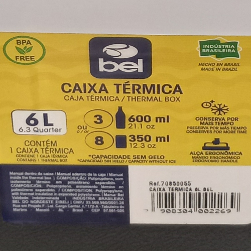 Conteúdo da embalagem: 01 Caixa Térmica 6L