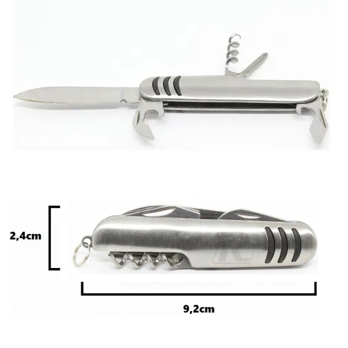 O canivete mede aproximadamente 9,2 cm aberto e 2,4 cm fechado, com design moderno e acabamento em metal que mantém sua beleza mesmo após uso frequente. Ótimo para quem precisa de um acessório resistente e versátil no dia a dia.
