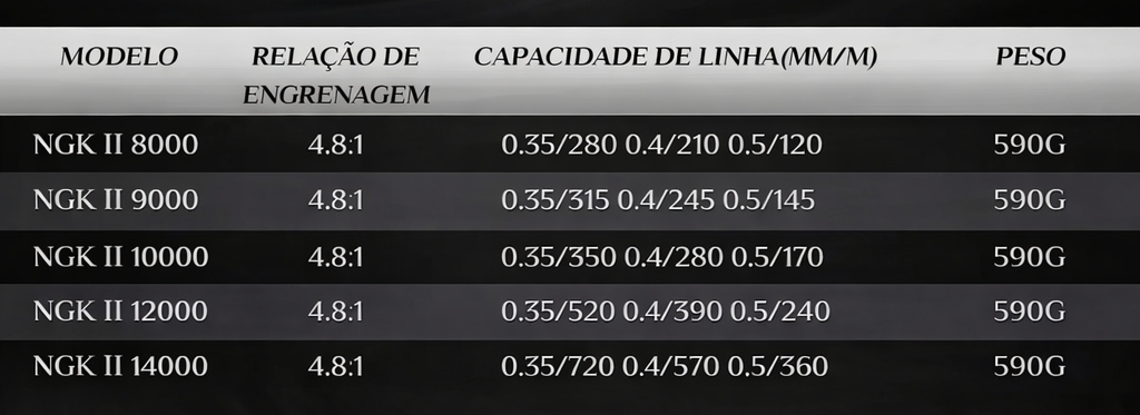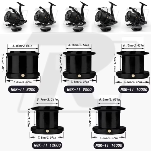 Molinetes de pesca NGK II 8000/9000/10000/12000/14000 séries de água salgada ou água doce, indicado para pesca surfcasting, rolamentos 17 + 1 inoxidável, frenagem 12 kg max, arraste ultra suave, poderoso carretel durável spinner de metal leve, engrenagem eixo de tamanho grande.