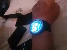 Dimensões (com pulseira): 1,1 x 4,5 x 26,5 cm